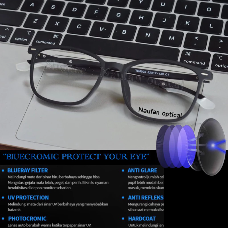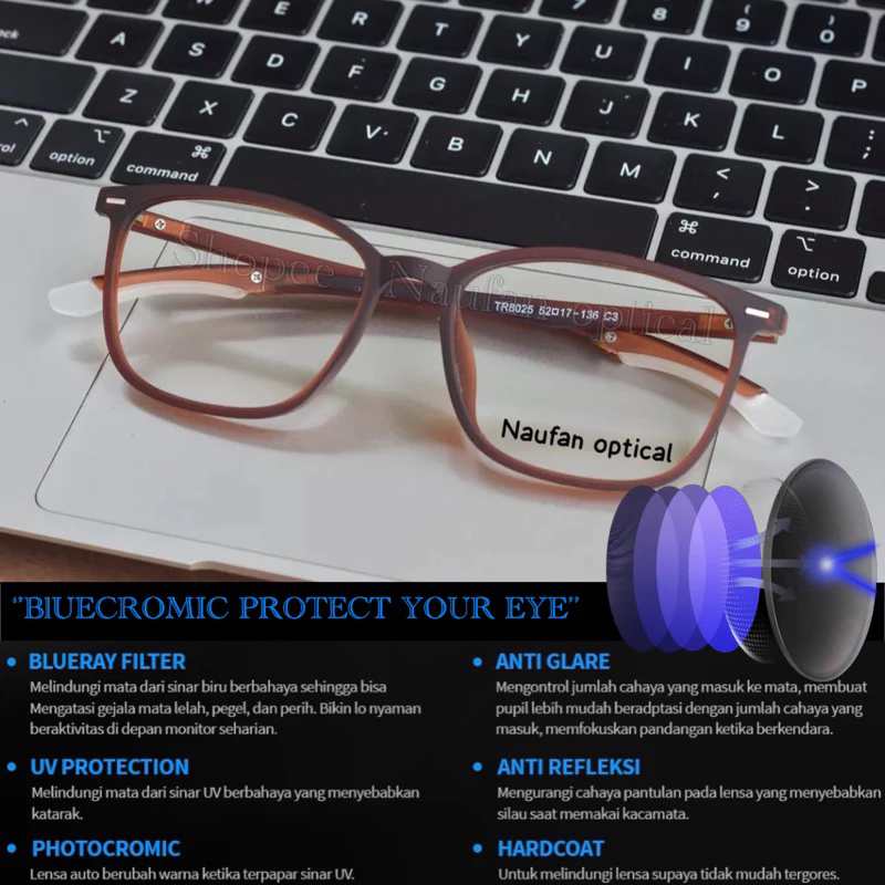 Tapi, kalau kamu mau yang paling overpowered, aku saranin pilih Lensa Bluecromic Pro. Ini adalah kasta tertinggi buat urusan perlindungan mata karena fiturnya super lengkap. Dia memproteksi mata dari sinar biru laptop, HP, sampai TV, sekaligus punya fitur UV protection.